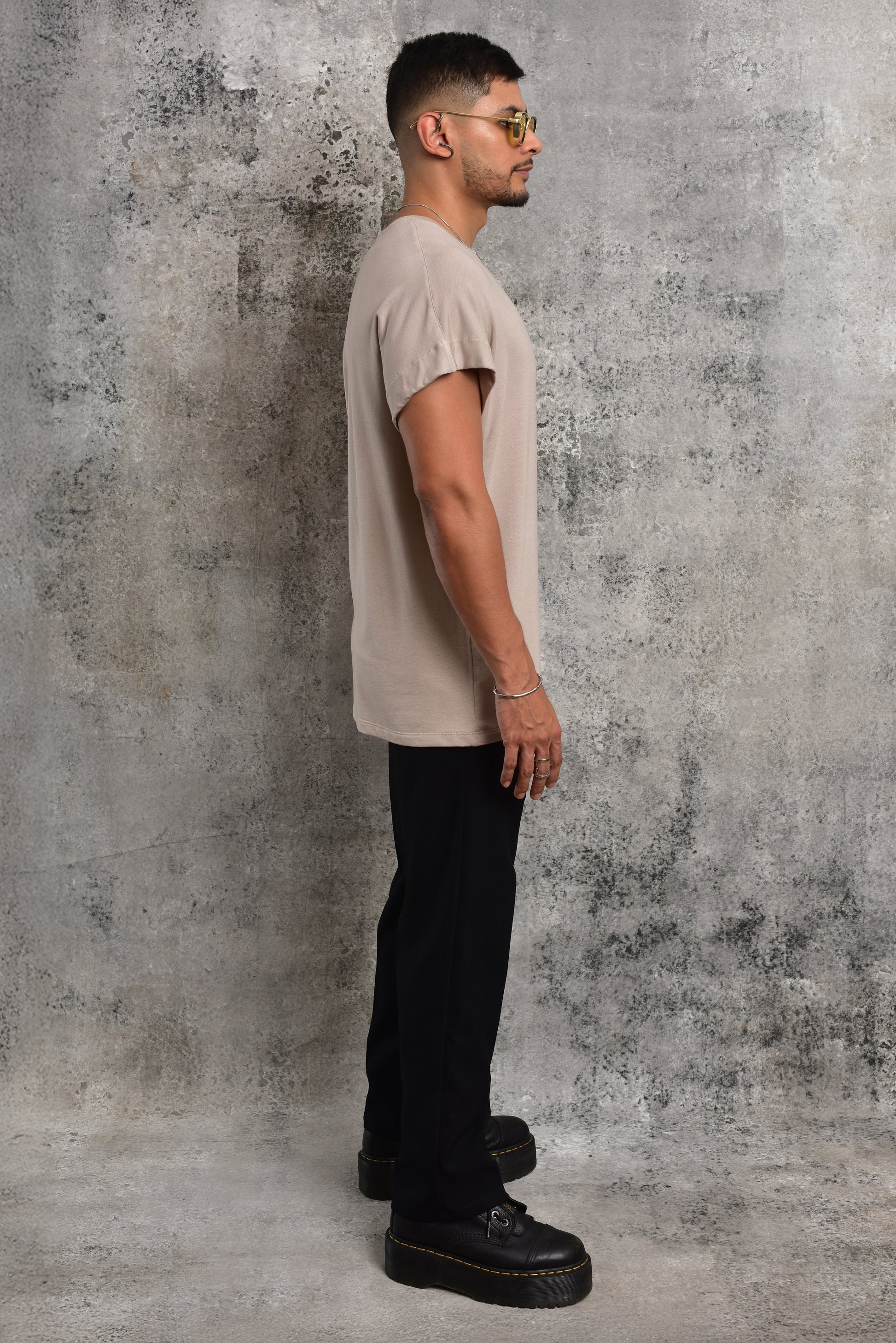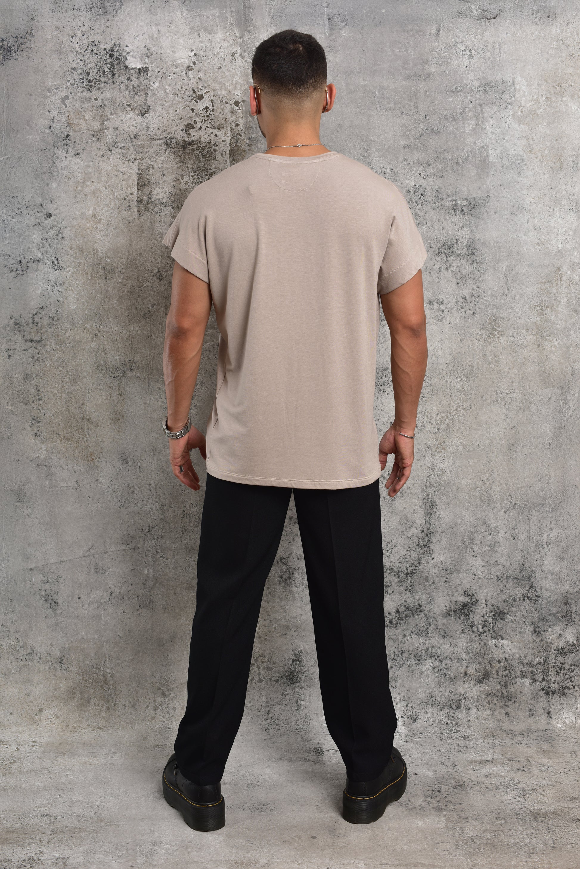 Camiseta busón de manga japonesa en tono beige, con corte semi over que aporta una silueta moderna, cómoda y sofisticada. Un básico elevado que transforma cualquier look en una expresión de estilo consciente y contemporáneo.